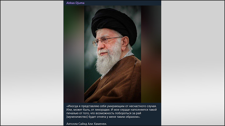Не могу не отметить, что верховный лидер Ирана погиб так, как мечтал. Он никуда не убежал, остался верен религии, себе, стране и народу,