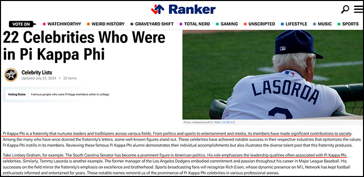 Линдси Грэм** значится среди самых известных и уважаемых членов "тайного братства", в котором состоит и сын муфтия Мухетдинова//Скриншот страницы сайта ranker.com