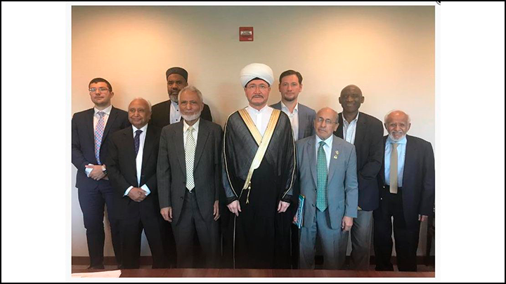 Дамир Мухетдинов (4-й справа) в ходе визита делегации ДУМ в США, 2019. Скриншот: интернет-сайт muslim.ru