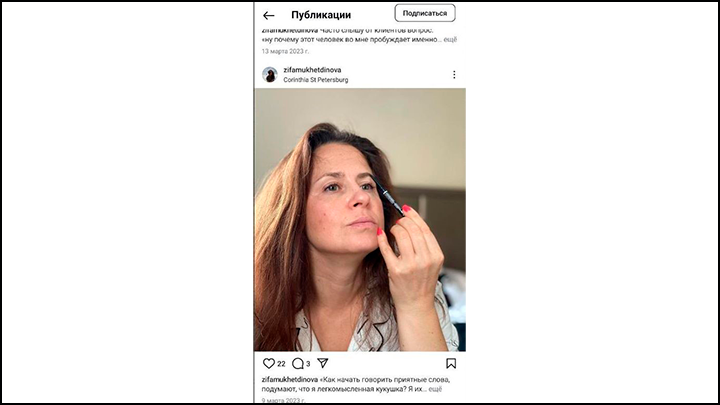 Скриншот: аккаунт Зифы Мухетдиновой в социальной сети Instagram*