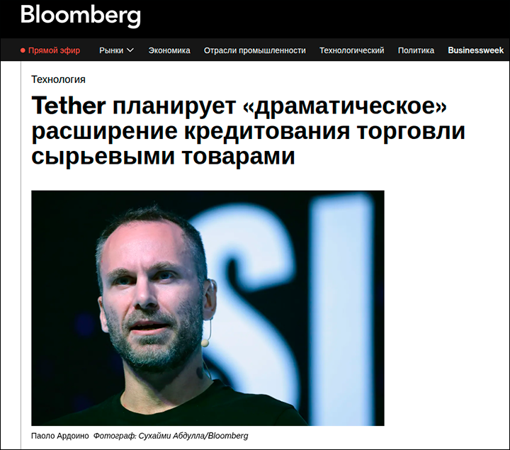 Вокруг Tether формируется целая сеть групп влияния. Скриншот: bloomberg.com