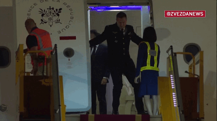 На кадрах видно, что дверь самолёта открывается, и Макрон получает от кого-то по лицу. Затем стало понятно, что ударила его жена. После удара Макрон ненадолго скрылся от камер, но вскоре вышел из самолёта вместе с супругой. Они держались на некотором расстоянии и не брали друг друга за руки.