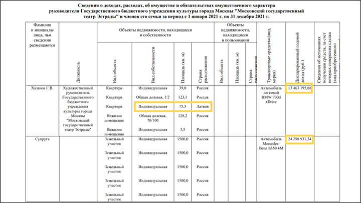 В последний раз Геннадий Хазанов подавал декларацию о доходах и имуществе за 2021 год, потом эту обязанность – публично раскрывать заработки – с госслужащих (а должность руководителя Театра эстрады – государственная) сняли.