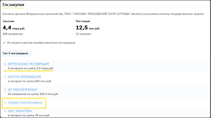 (Кстати, АО "Ренессанс-Реставрация", которое занимает 1-ю строчку поставщиков, также не совсем чужая для Хазанова компания – но об этом расскажем далее.)