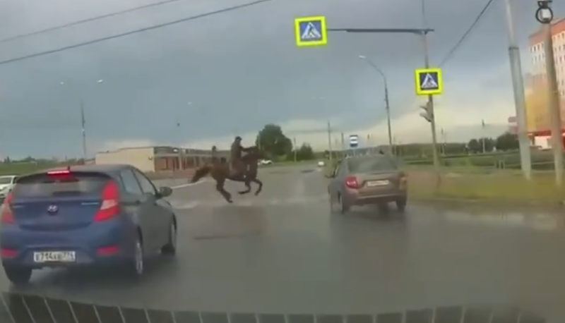 Лошадь на переходе: в Магнитогорске автомобиль столкнулся с всадником