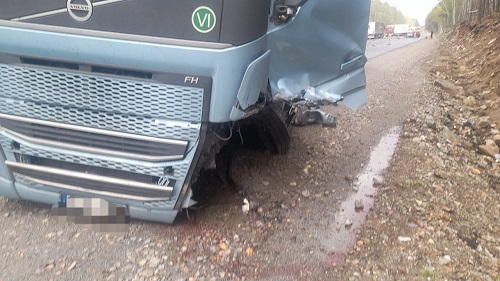 Столкновение с фурой на высокой скорости оказалось для женщины смертельным. Иномарку просто расплющило на трассе, а металлическая обшивка слезла с неё, как кожа.