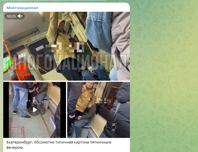 Грустная картина наблюдалась пятничным вечером в трамвае №24 города Екатеринбурга. Ехали два мигранта. Абсолютно пьяные. Один из них просто совсем потерял связь с реальностью, а другой его бережно придерживал за голову.