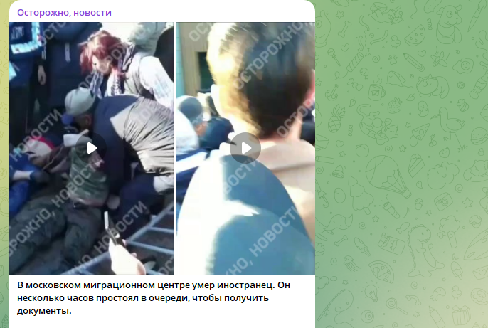Естественно, при таком ажиотаже мигранты ждут своей очереди часами. Двоим стало плохо, пока стояли в плотном скоплении соотечественников. Они упали в обморок, пишет ТГ-канал "Осторожно, новости". Подъехала скорая, но пожилого приезжего медики не спасли.