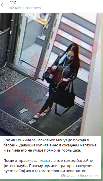 После этого София Конкина отправилась в бассейн. У авторов телеграм-канала возникли вопросы к администрации заведения - как они могли пустить Конкину в нетрезвом состоянии?