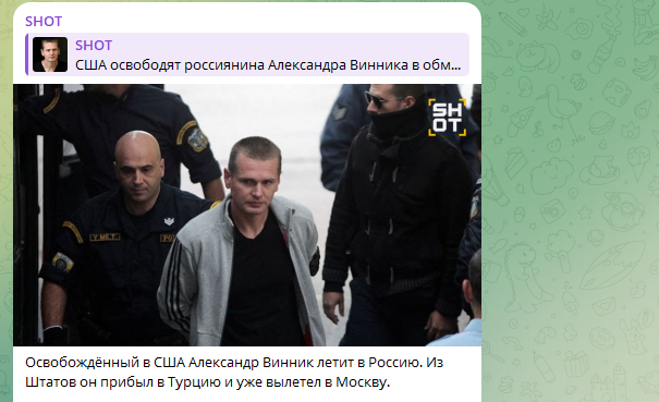 Напомним, взамен Винника Россия отпустила учителя англо-американской школы при посольстве США Марка Фогеля, который был приговорен к 14 годам лишения свободы за контрабанду наркотиков.