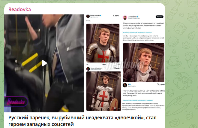 Из-за того, что хулиган пытался говорить на английском, жители США решили, что драка произошла у них в стране. Американцы настолько поразились парнем, поставившим на место пьяного мужчину, что делают с ним мемы в образе воина-крестоносца, защищающего свои земли.