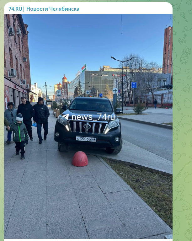 В центре Челябинска автомобиль нагло перегородил тротуар. Подписчица Telegram-канала "74.RU | Новости Челябинска" сообщила, что инцидент произошел возле здания управления внутренней политики губернатора, расположенного на улице Карла Маркса, 68.