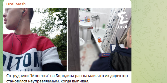 — Сотрудники "Монетки" на ул. Бородина рассказали, что их директор становился неуправляемым, когда выпивал. После алкоголя у него не раз срывало крышу, — пишет тг-канал Ural Mash.