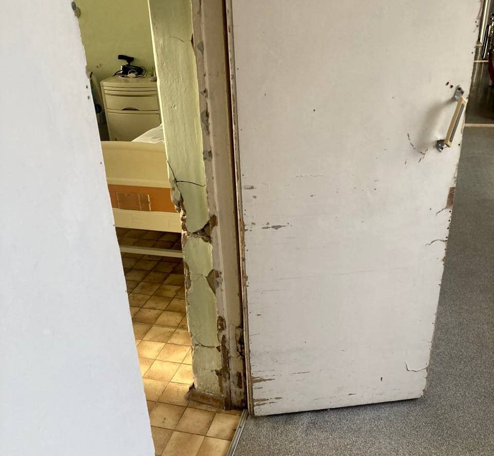 Картина, открывшаяся специалистам, показала системные проблемы. В помещениях пищеблока, где готовится еда для пациентов, состояние было признано неудовлетворительным: повсеместная отслоившаяся штукатурка, выбоины на стенах и потолке. Такое состояние не только создаёт грязный вид, но и, что критично, делает невозможной качественную дезинфекцию, напрямую угрожая безопасности питания.