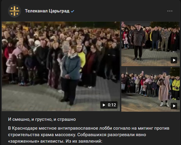 В Краснодаре прошёл антиправославный митинг. Формально протест связан с планами построить храм в зелёной зоне, но аргументы протестующих почему-то были связаны не с тем, что гражданам негде гулять.