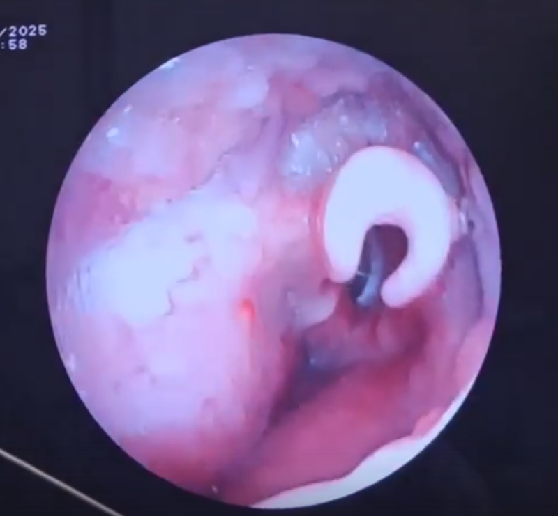 Ситуация осложнялась тем, что гибкий инструмент не мог зацепить "врага". Тогда команда пошла ва-банк, применив ригидную (жесткую) бронхоскопию. Минуты тишины, ювелирная работа щипцами — и предмет, намертво застрявший в гортани, поддался.