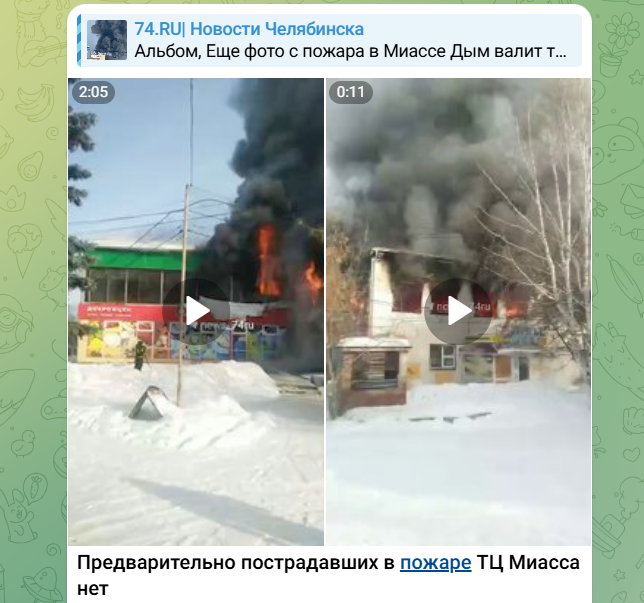 В социальных сетях очевидцы делятся кадрами густого чёрного дыма, который виден из разных точек города. Жители в паблике "Инцидент Миасс" пишут: