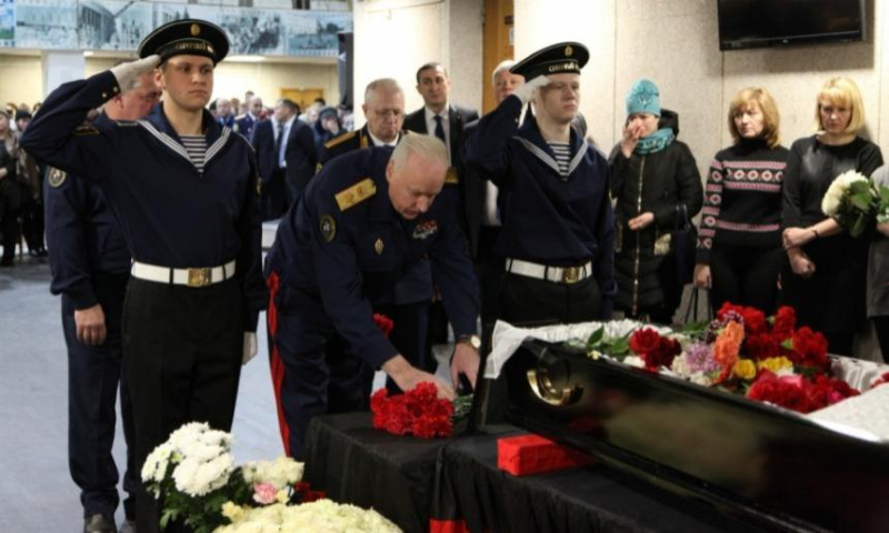 На прощание с героем прибыли глава Северодвинска Игорь Скубенко и председатель СК России Александр Бастрыкин, а матросы Беломорской военно-морской базы встали в почетный караул у его гроба. Страдающая алкоголизмом мать так и не пришла на прощание с сыном.