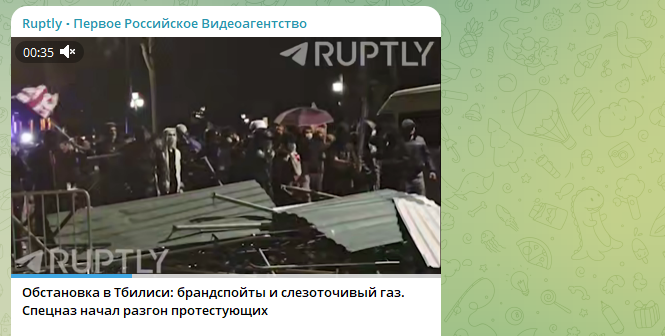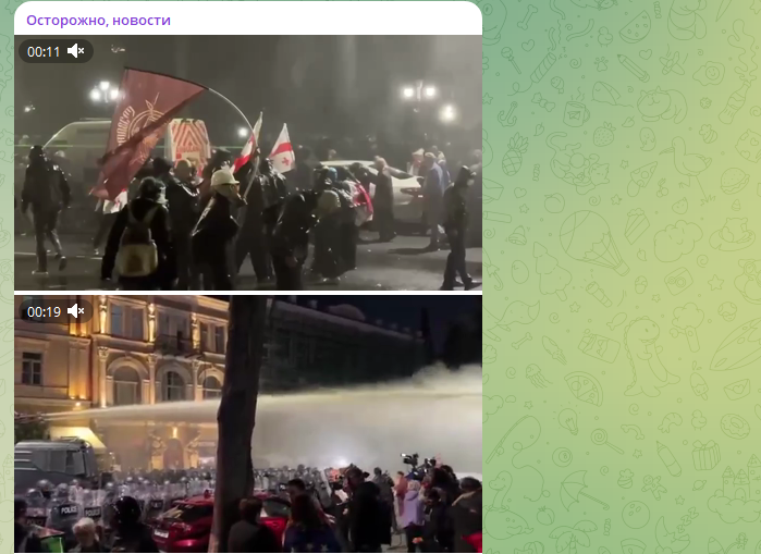 От резиденции толпу оттеснили, пустив в ход водометы и слезоточивый газ. Но в сторону дворца всё равно летят камни. В МВД Грузии заявили, что протесты вышли за рамки закона. Начались задержания.
