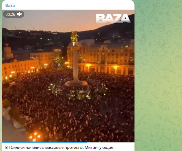 Митинг оппозиции перерос в массовые столкновения на улицах Тбилиси. Толпы митингующих проследовали по проспекту Руставели к площади Свободы, а затем двинулись прямо к президентскому дворцу.