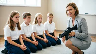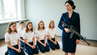 Вместо безобидной фотосессии для выпускного альбома школьники оказались на коленях перед женщиной с автоматом...